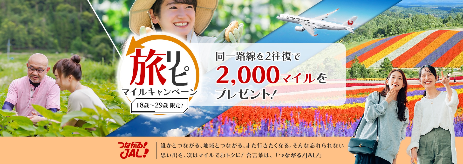 JAL、29歳まで同一路線2往復で2,000マイル贈呈!