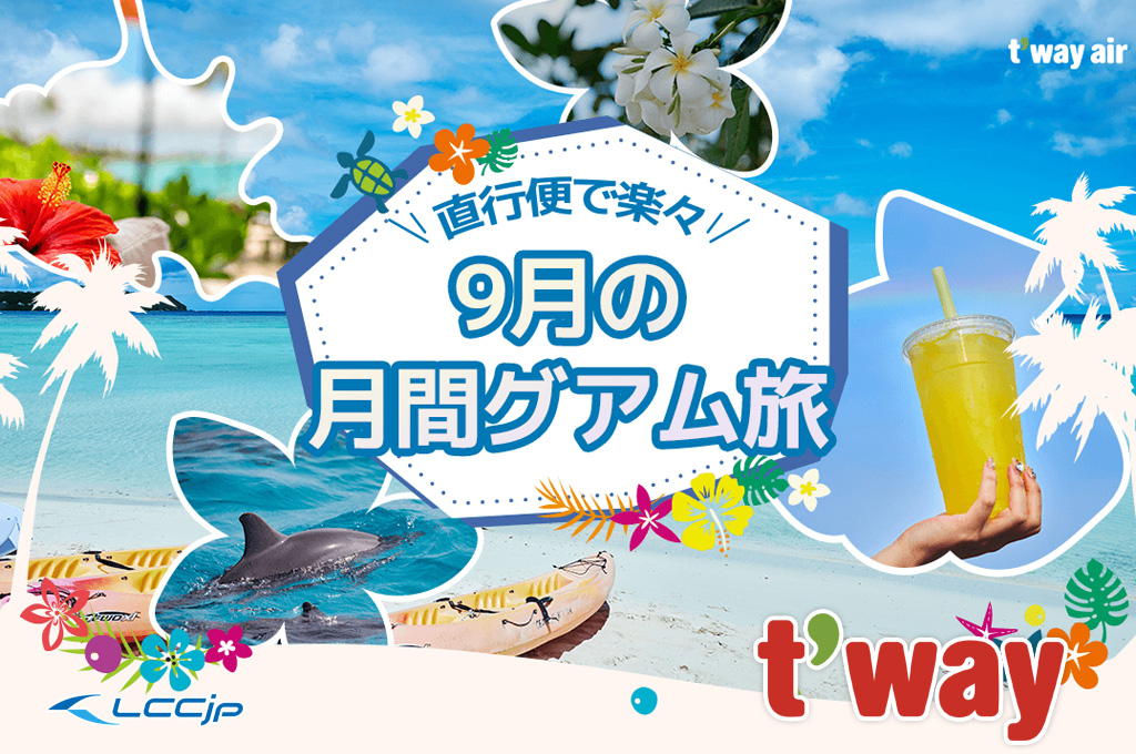 ティーウェイ航空が「9月の月間グアム旅 セール」を開催中です。期間中、大阪(関西)からグアムを結ぶ路線のスマート運賃が25%割引になるクーポンを提供しています。このセールは2025年9月1日から9月30日まで実施中です。乗車対象期間は2025年9月1日から12月24日までです。また、サンセットディナークルーズやディナーショーなど人気アクティビティが15%オフになるキャンペーンも同時開催中です。