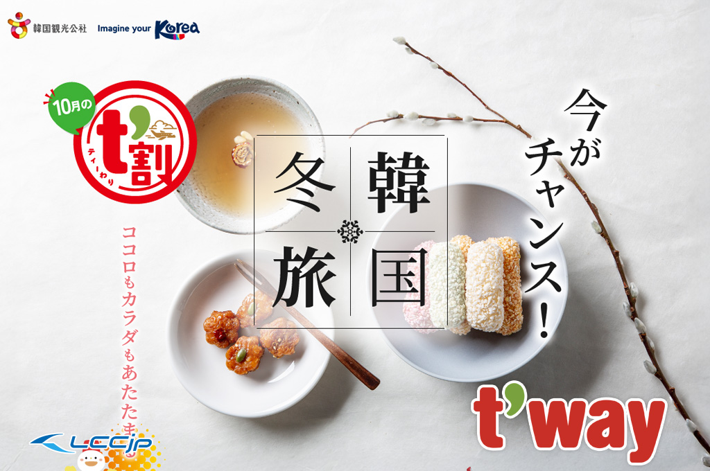 ティーウェイ航空は期間限定セール「t'割」を開始しました。最大15%オフのセールで、片道9,200円から韓国への国際線を予約できます。公式サイトで割引コード「IMAGINEKR」を使うとセール価格が適用され、往復予約にはさらに3,000円の割引クーポンも。